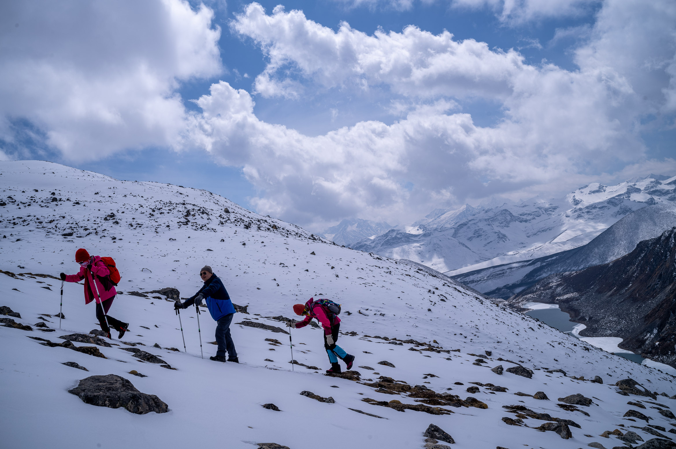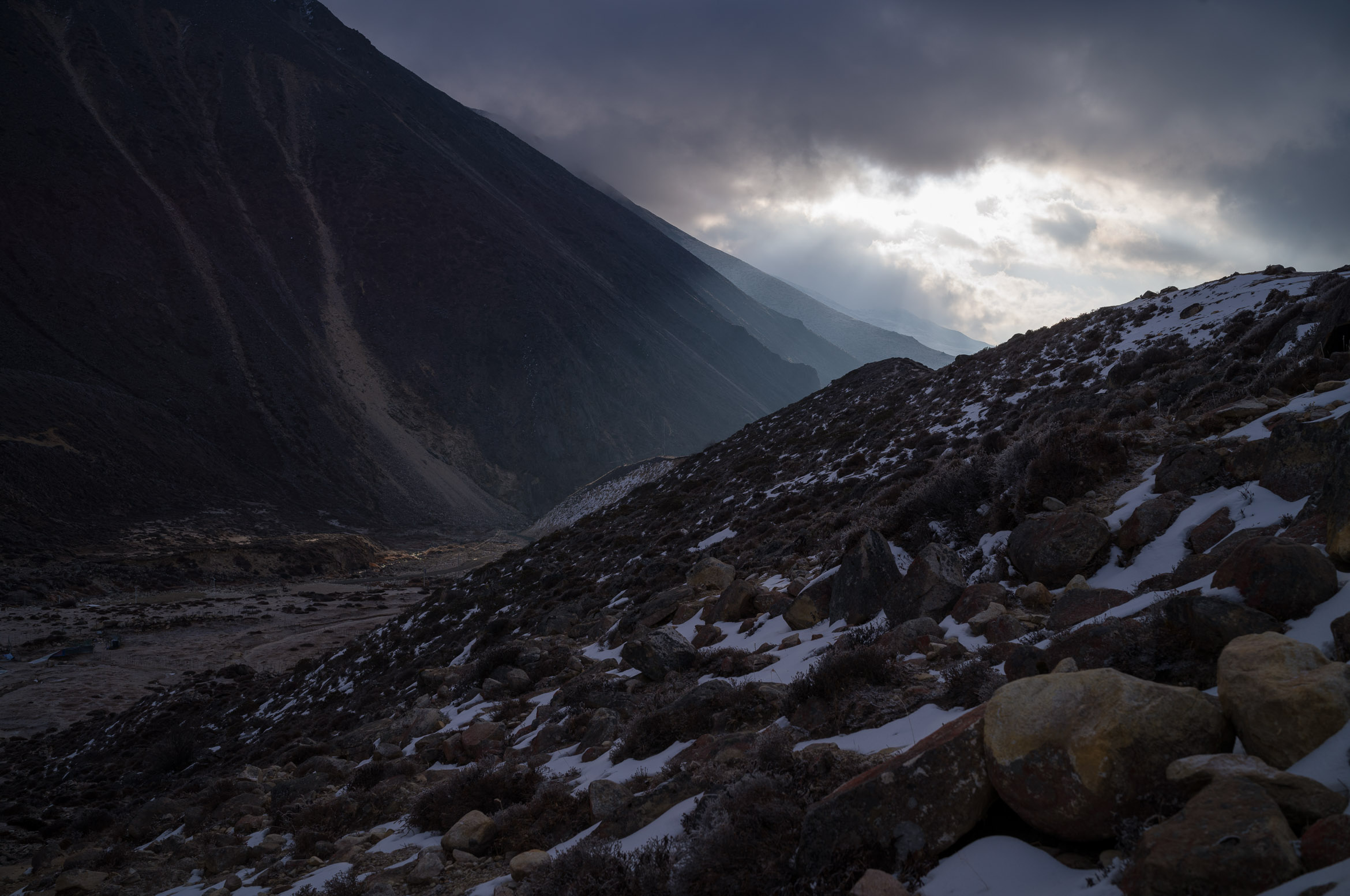 There are many Cassiope and Rhododendron on the alpine meadow of Kula Kangri, but they are not in bloom yet in March.
