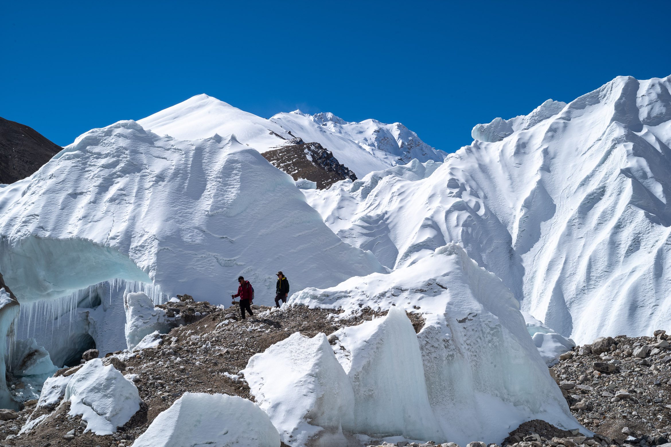 Compared with the southern route, the scenery on the northern route is relatively simple. Hikers start from the camp at 5,000 meters, walk along the gentle slope to the glacier at 5,900 meters, and then camping nearby.
