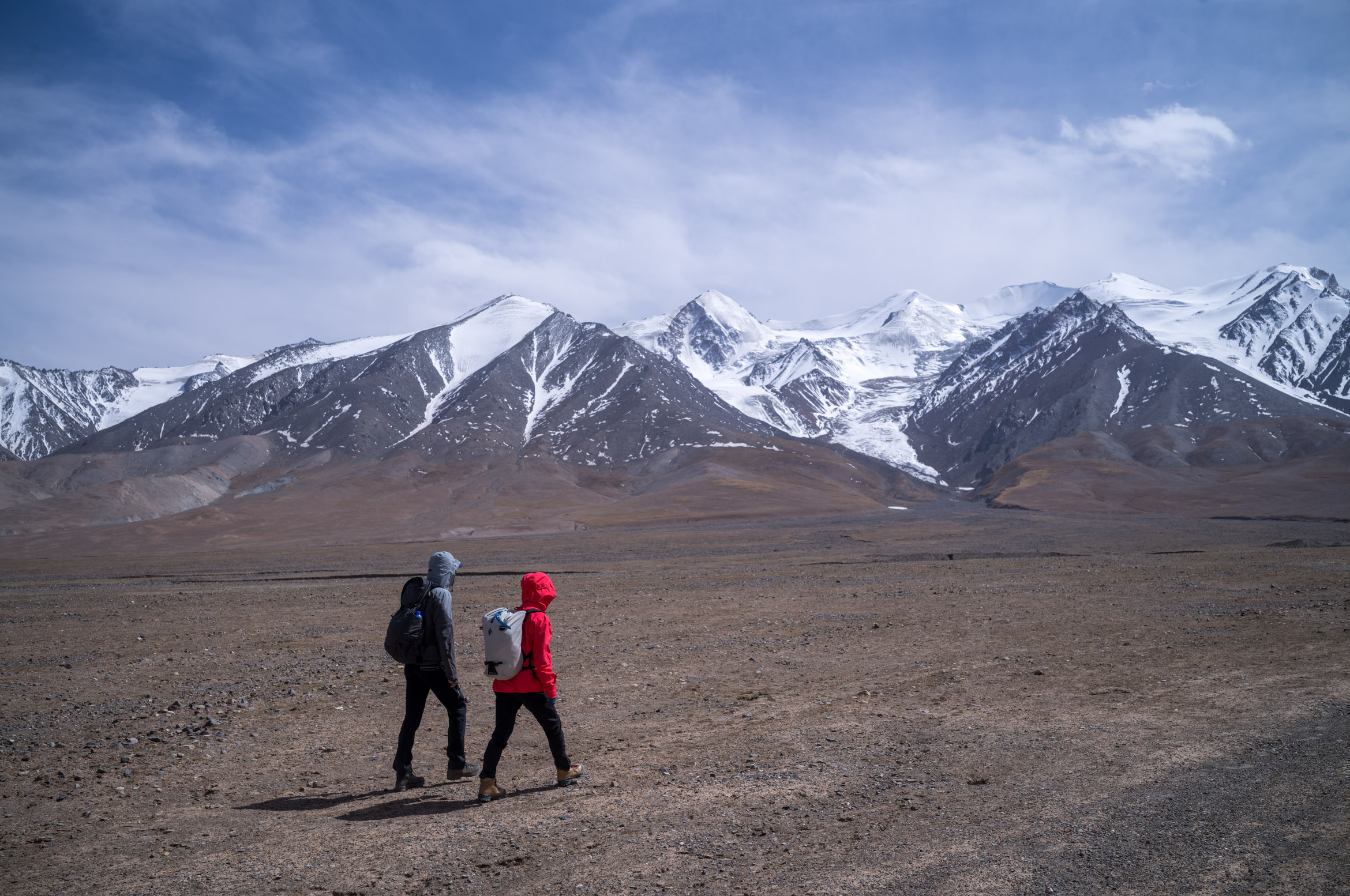 Hikers hide from rising sand 登山客躲避突起的风沙 从大本营出发 Depart from base camp 你们好 Hello The background is Yuzhu Peak 背景就是玉珠峰 Guide A’Zhen 向导阿真
